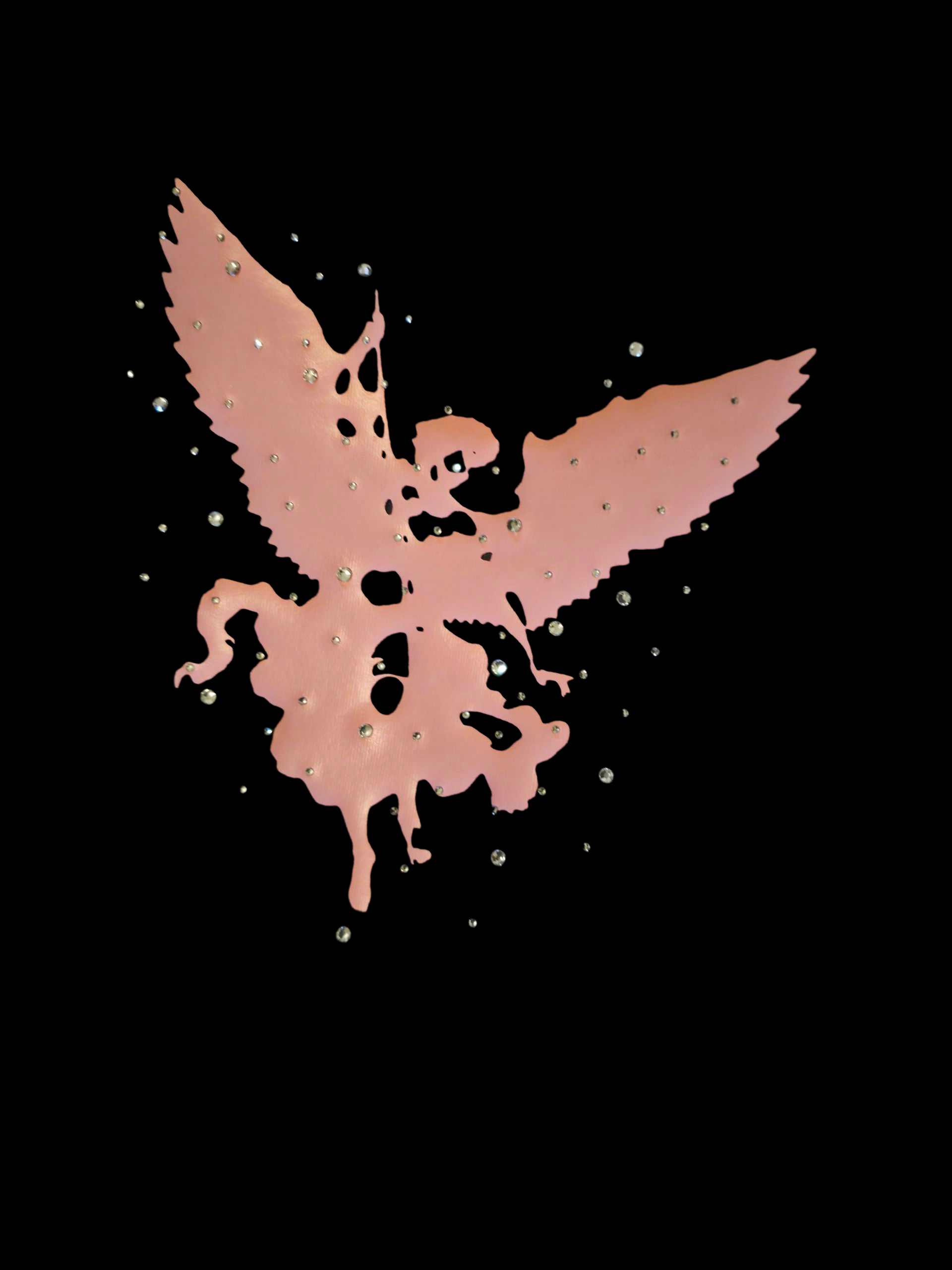 The front features a bold pink angel graphic accented with hand-set rhinestones, creating a subtle shine that hits in the right light. It’s the perfect balance of statement and simplicity.